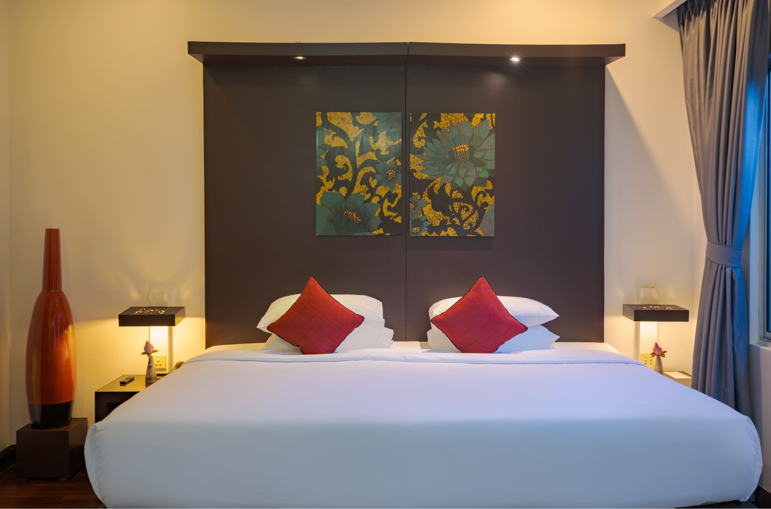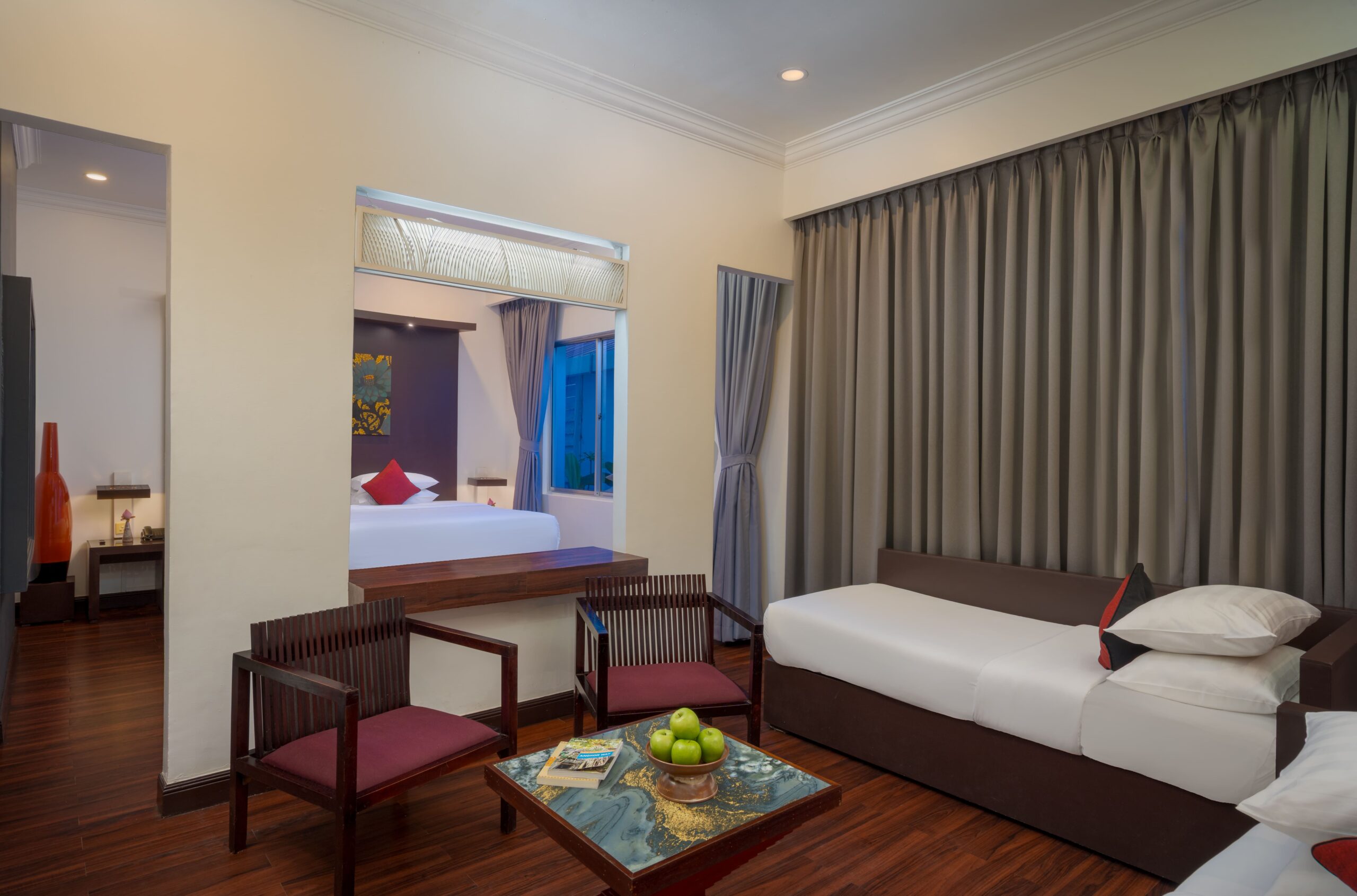 Designed for comfort and togetherness, the Family Suite features one king-size bed and two single beds, making it ideal for families or small groups. The suite offers a seating area, a luxurious bathroom with a rain shower and a separate bathtub, and full modern amenities. Relax, unwind, and enjoy a stylish boutique retreat in the heart of Siem Reap.